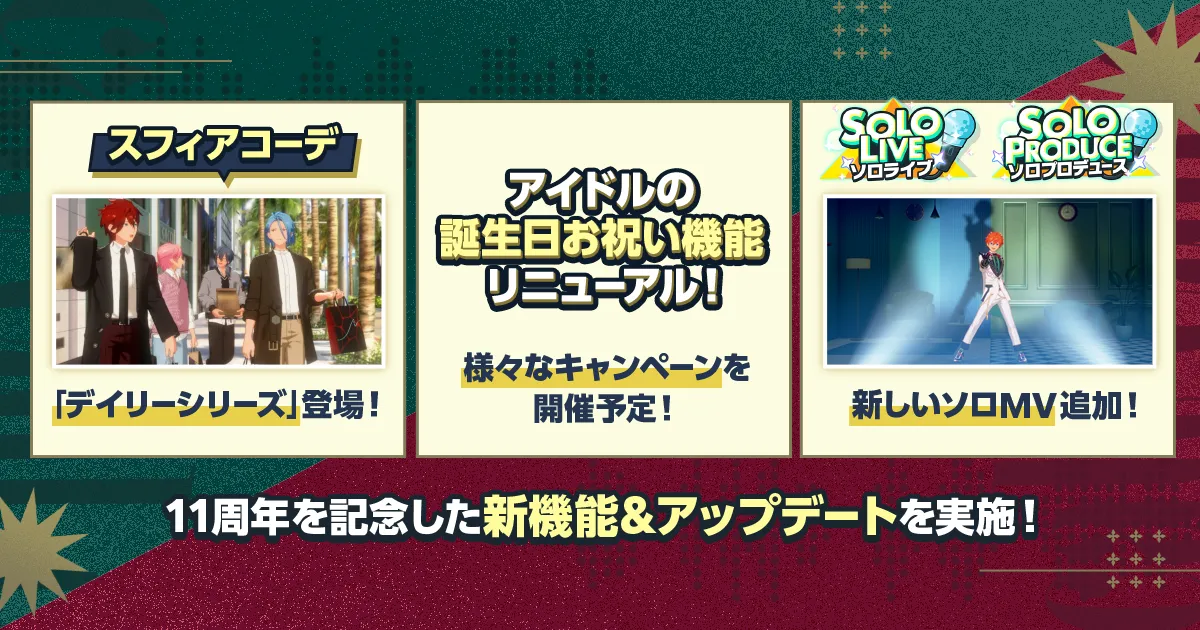 スフィアコーデに新しいラインナップ「デイリーシリーズ」が登場!他にもアイドルの誕生日お祝い機能リニューアルや、ソロプロデュース/ソロライブに新しいソロMV追加などアップデートを実施!